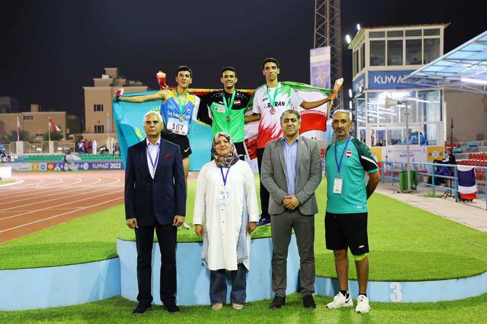 أبطالنا في الصدارة الف مبروك تصدر المنتخب العراقي بالعاب القوى منافسات اليوم الأول من سباقات الجائزة الكبرى الاسيوية الجارية احداثها في مدينة مشهد الايرانية بمشاركة ١٤ دولة. حيث أضاف المنتخب العراقي ذهبيتين وبرونزيتين ليكون العدد اربع ذهبيات وبرونزيتين في اليوم الأول من السباق. وقال المدير التنفيذي للاتحاد الدكتور زيدون جواد ان وفد منتخبنا أضاف ذهبية وبرونزية في سباق ٤٠٠م حيث حقق طه حسين ياسين ميدالية ذهبية بزمن ٤٦.٢٢ثا، بينما حصد زميله محمد عبد الرضا جنجون الميدالية البرونزية لنفس السباق بزمن ٤٧.٣١ثا. وبين أن منتخب العراق للتابع ٤×١٠٠م المؤلف من فلاح عبد الزهرة وأكثم يونس وحسنين حسين وحسين علي ناهي تمكنوا من حصد ذهبية السباق ليكون مجموع الميداليات ٤ ذهب وبرونزية واحدة، فيما حصل اللاعب حسين فلاح على برونزية الوثب العالي للارتفاع ٢.١٥م . يشار إلى أن أن العراق حصد ذهبية ١٠٠م بواسطة العداء حسين علي وسباق ١١م حواجز عن طريق العداء محمد سعد.